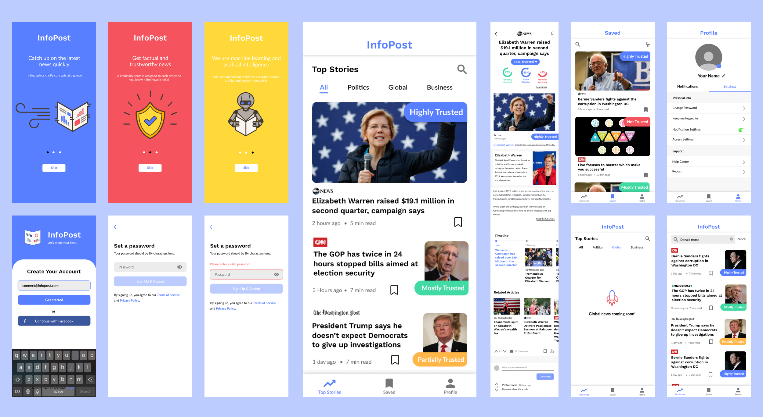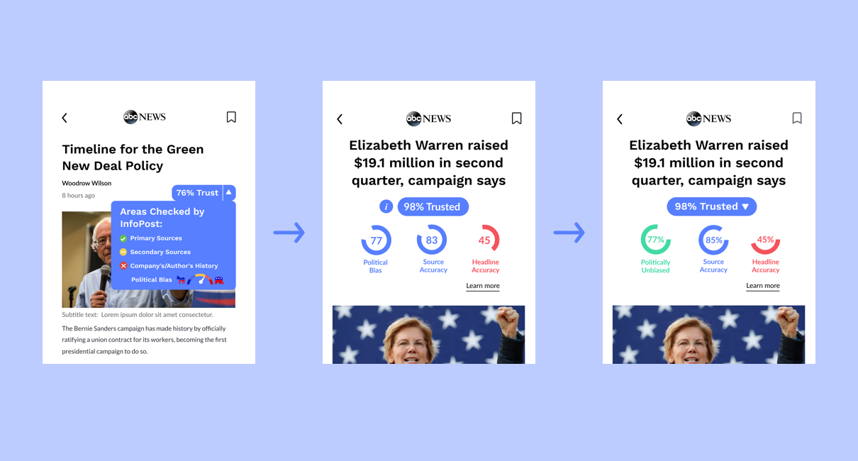 InfoPost is a startup that changes the way people experience the news by giving credibility scores to articles and creating AI generated infographics to increase the clarity and transparency of the news.